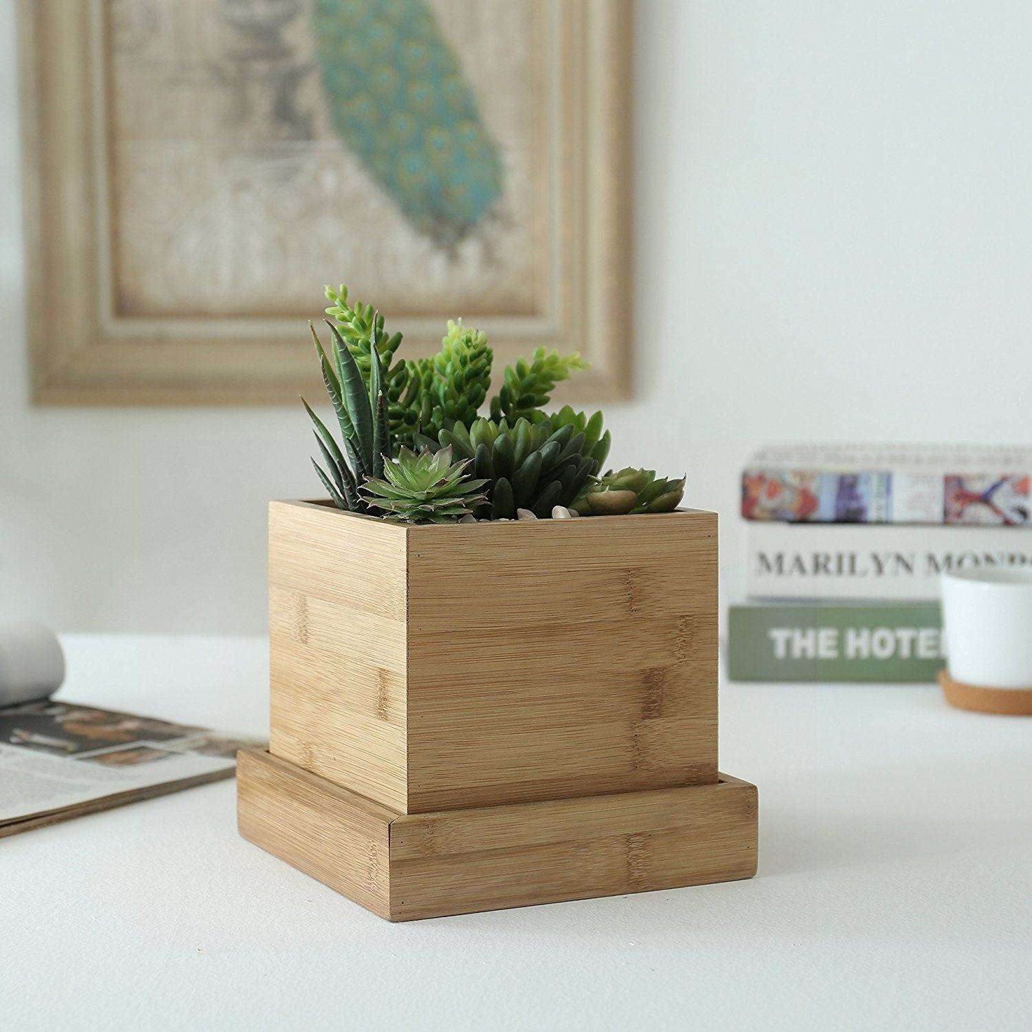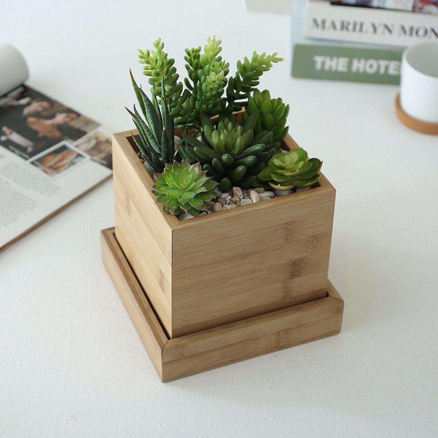 Wholesale Home Garden balcony Square Flower Succulent Bamboo Planter Pot
