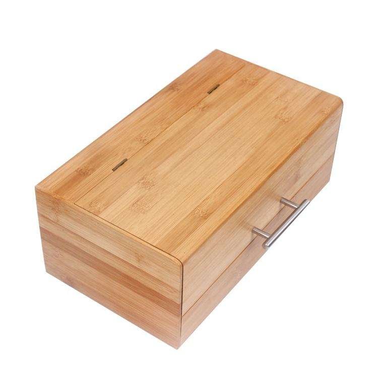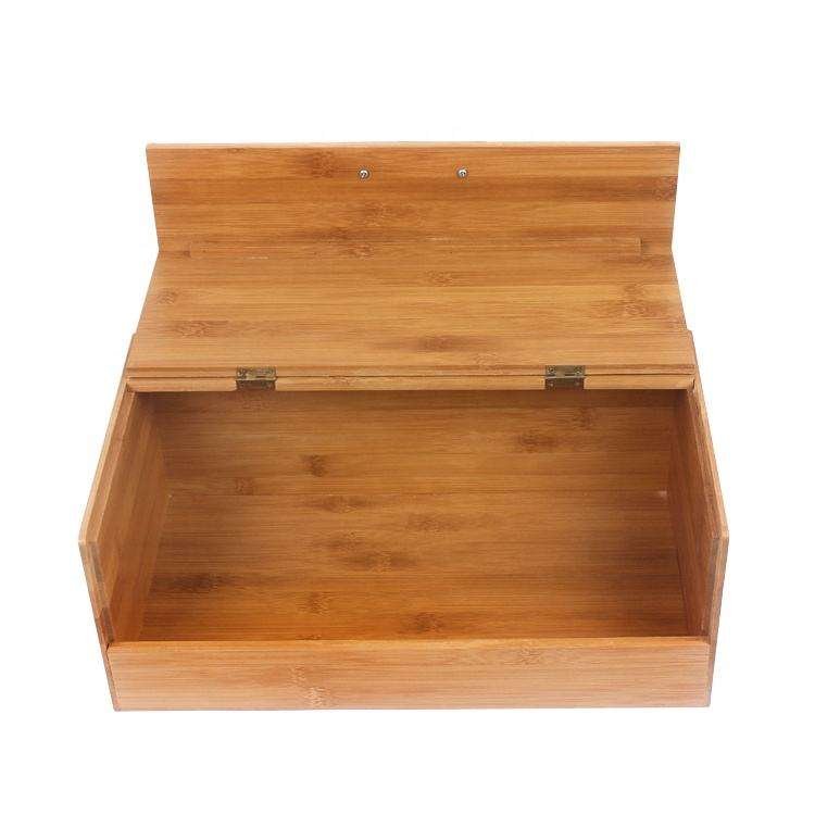 Wholesale Natural Bamboo Bread Box Large Capacity Bread Storage Container with Lid for Kitchen Counter