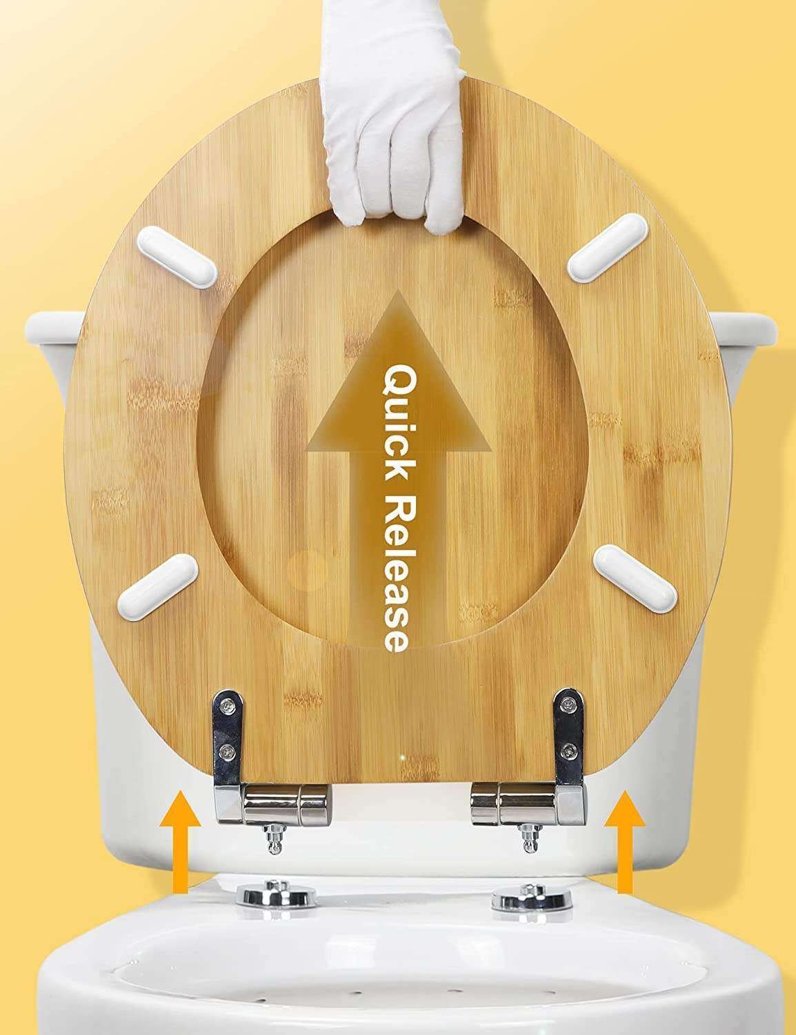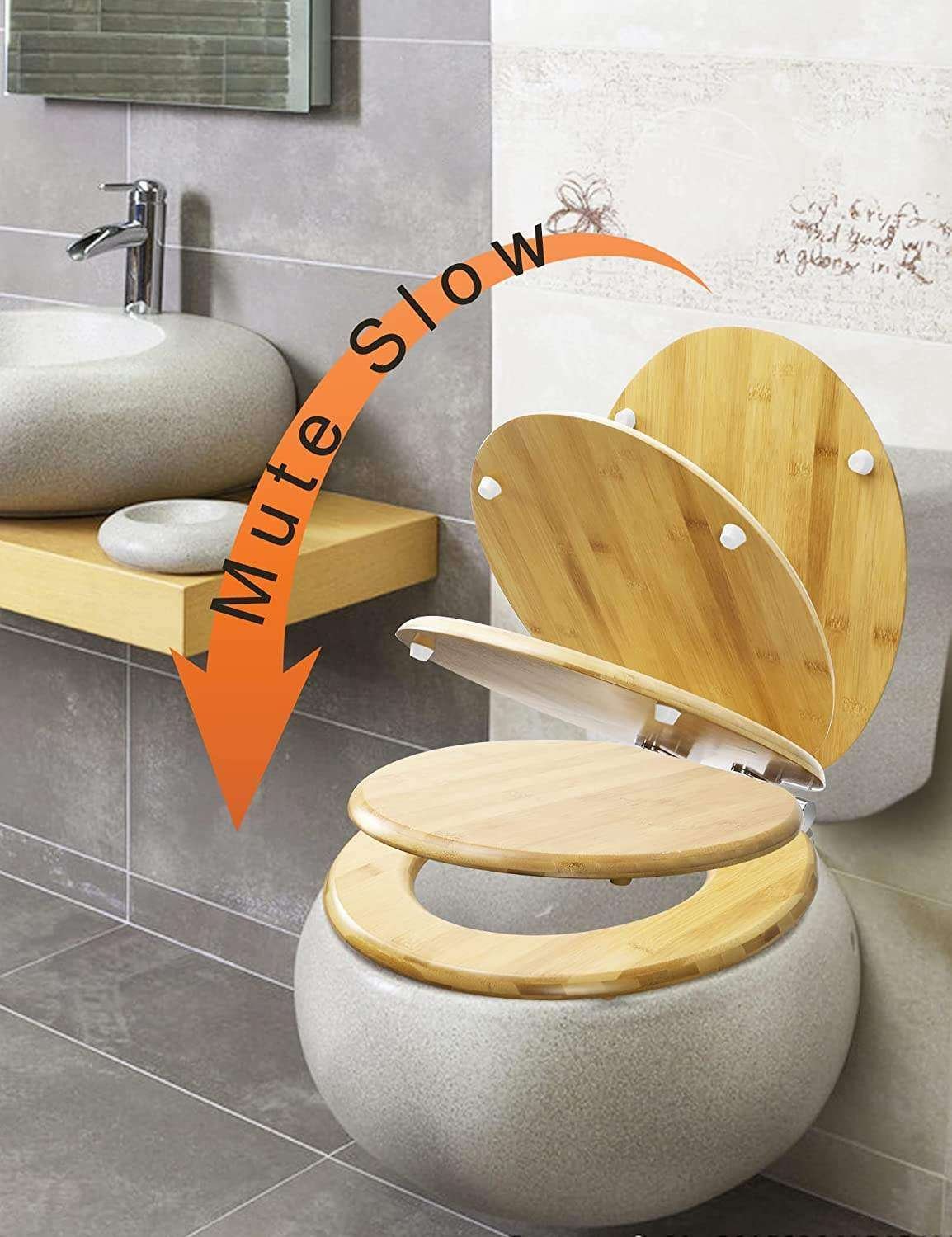 Quick Release Slow Close Zinc Alloy Strong Hinges Round Bamboo Toilet Seat with Lid for Bathroom wholesale