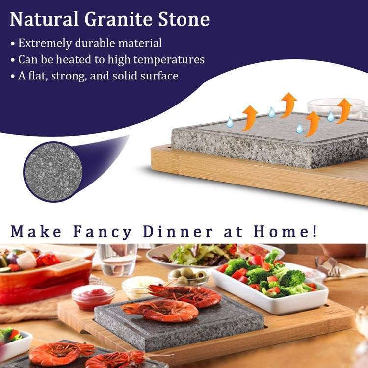 Hot Lava Stone Steak Plate Sizzling Rock Stone Indoor Bbq Grill Granite Stone Cooking Set With Bamboo Platter And Bowl