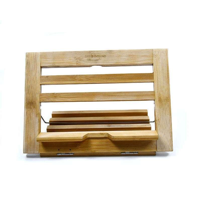 Wholesale Portable Foldable Bamboo Cookbook Holder with Sturdy Reading Stand Metal Bookend for Home Office Use