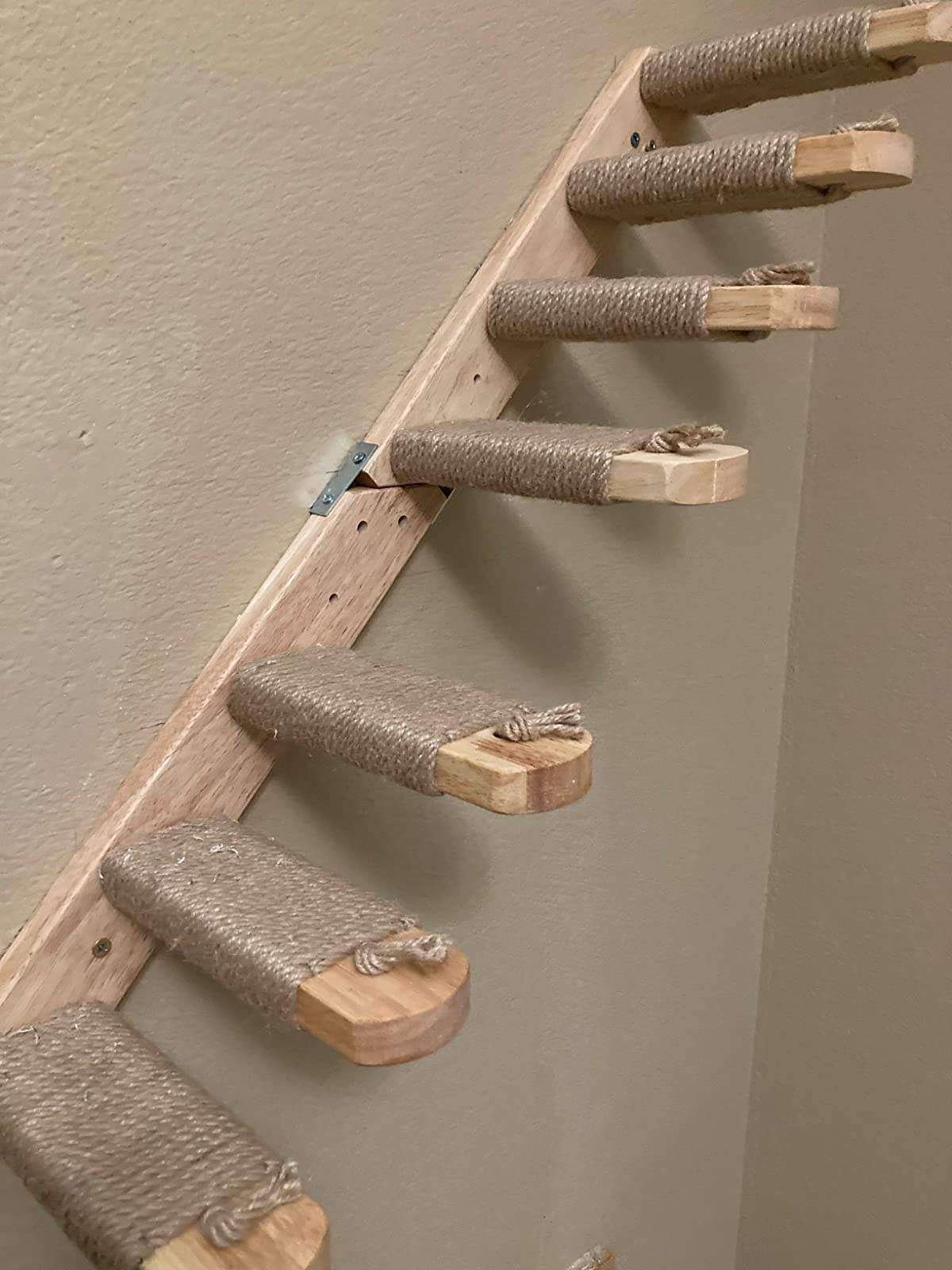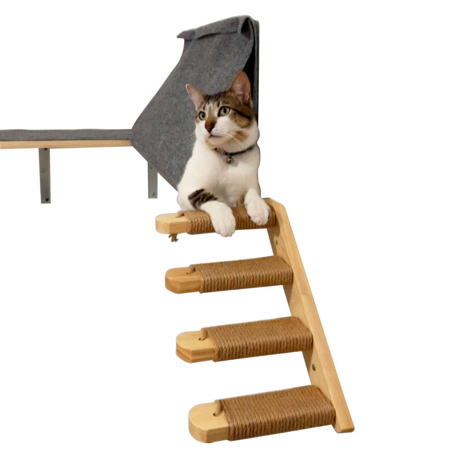 Wooden Cat Climbing Shelf Wall Mounted Four Step Cat Stairway with Jute Scratching for Cats Perch Platform Supplies