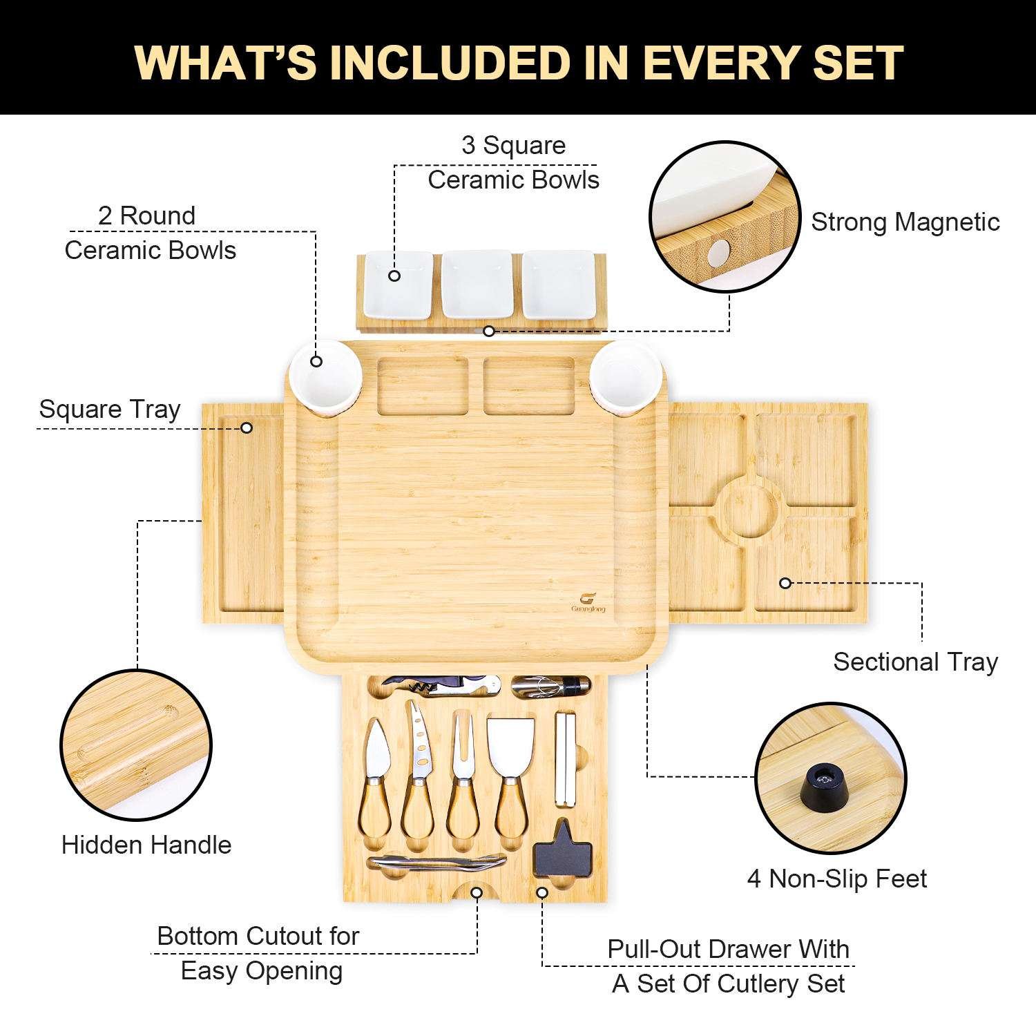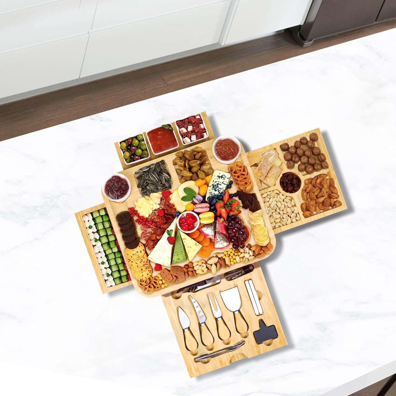 GL Large Charcuterie Bamboo Cheese Board Serving Tray Platter Charcuterie Board Set For House Warming Gifts