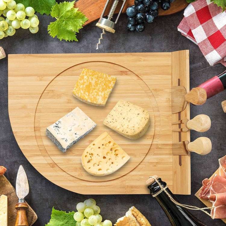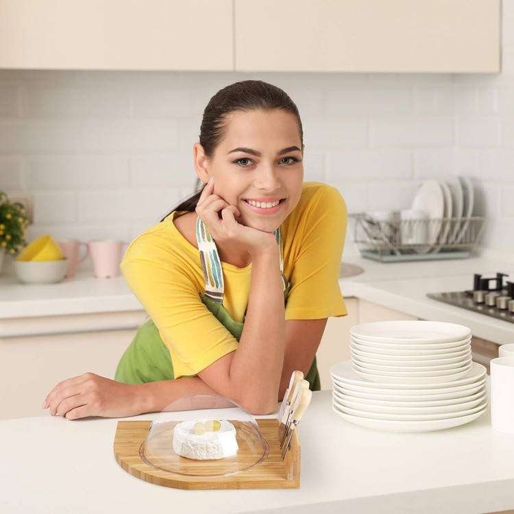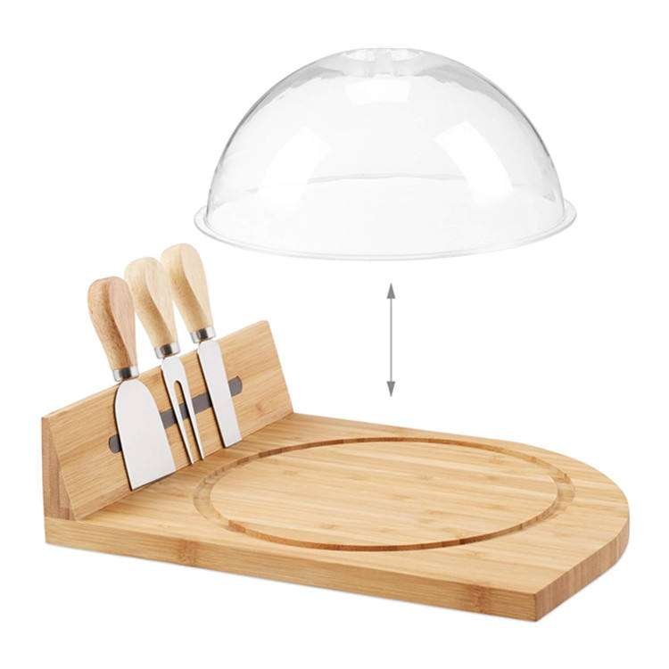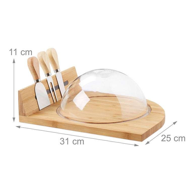 Kitchen Bamboo Cheese Desert Serving Tray Magnetic Cheese Board With Glass Dome Cover And Kninfe Set
