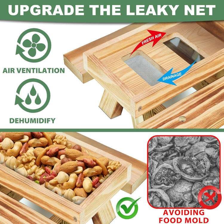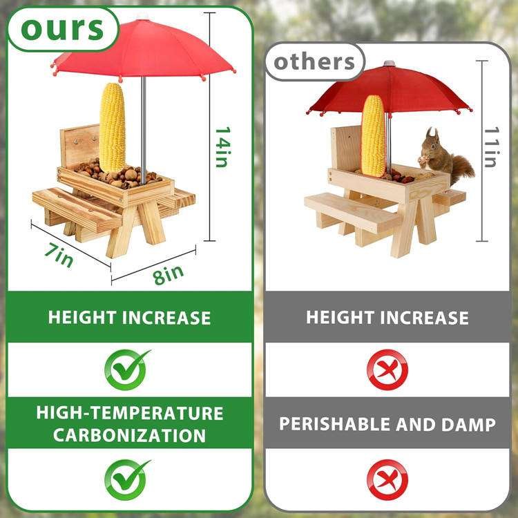 Outside Funny Chipmunk Picnic Table Waterproof Feeder Corn Cob Holder Carbonized Wood Squirrel Feeder With Umbrella
