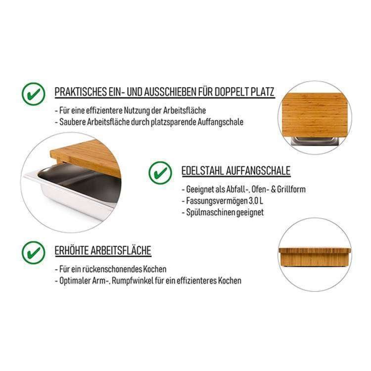 Custom Kitchen Extra Large Bamboo Chopping Board Kitchen Rectangle Wood Cutting Board With Sliding Stainless Steel Tray