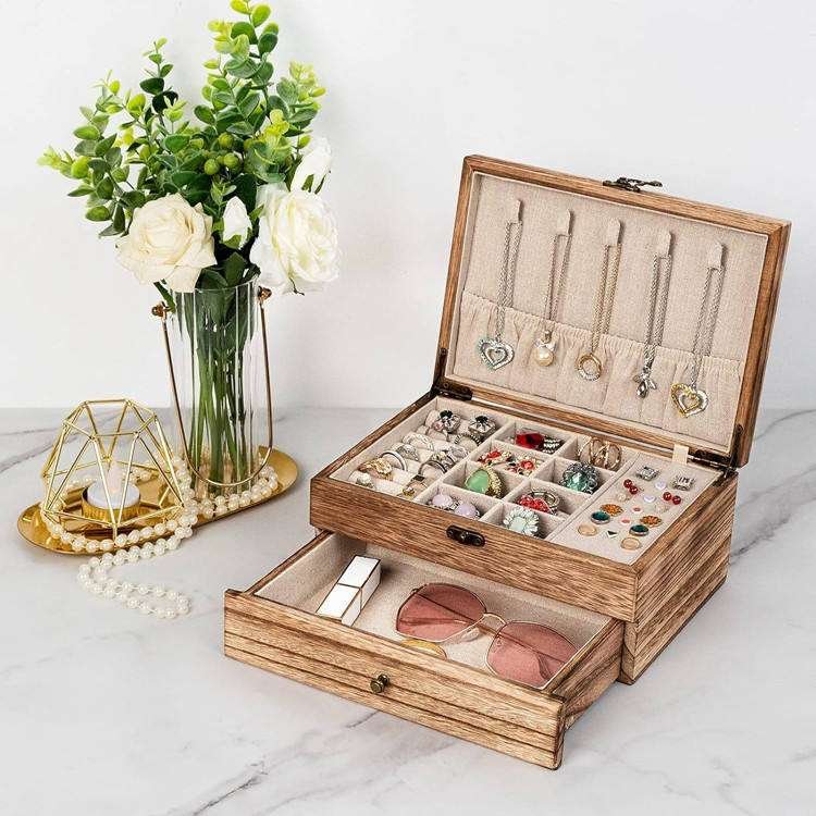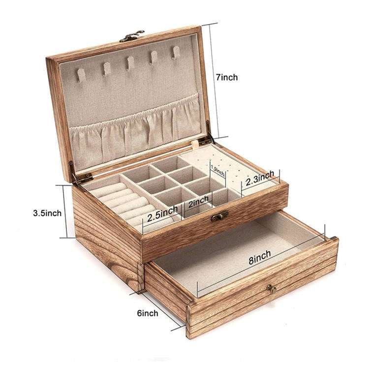 Rustic Large Wooden Jewellery Organizer Storage Jewelry Wood Pendant And Earring Combination Box With Drawer