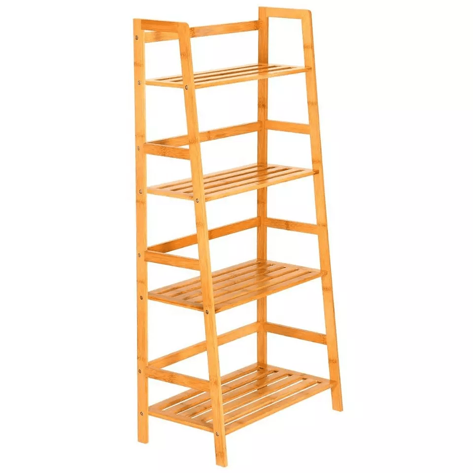 Wholesale Bamboo Ladder Book Shelf Wood Bookcase Rack 4 Tier Display Rack For Clothing Store