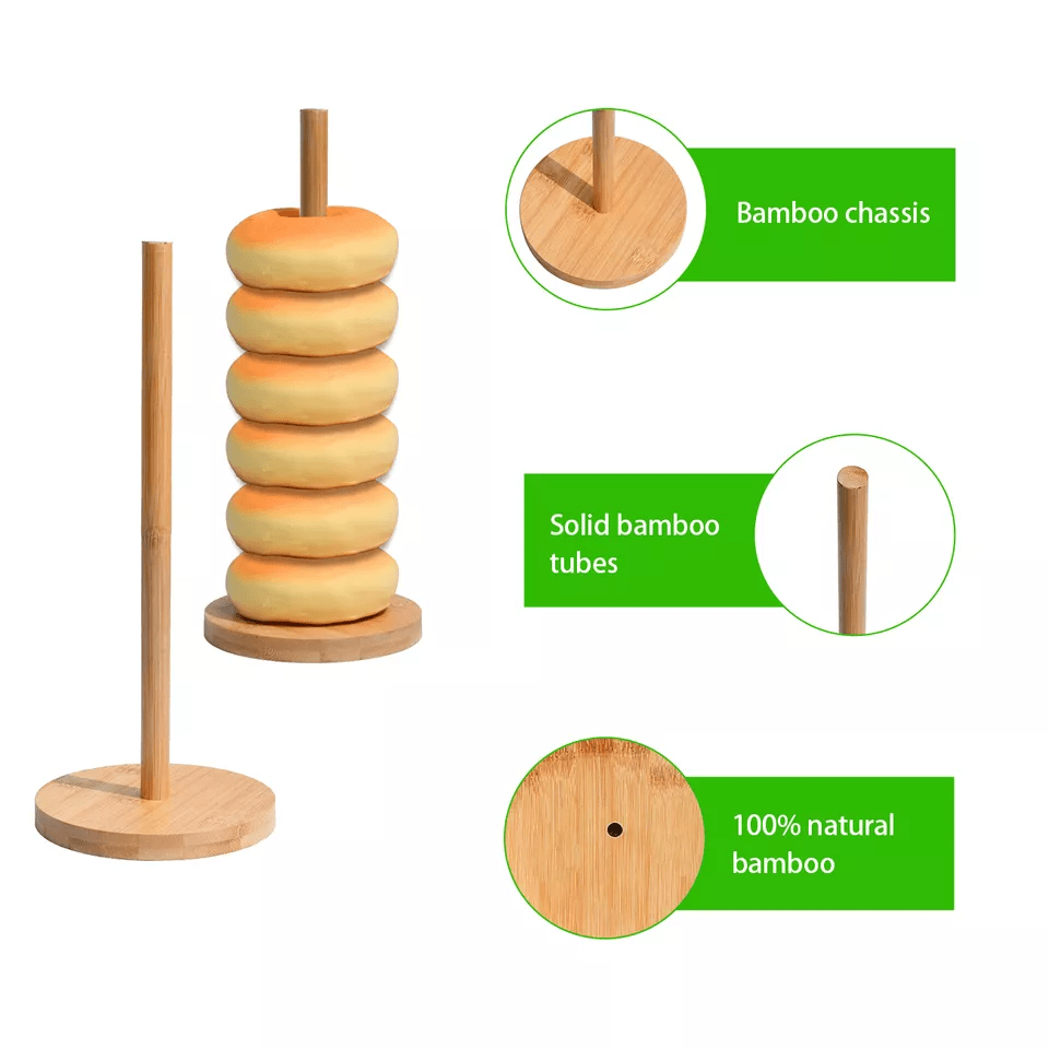 New Improved Set of 2pcs Bamboo Donut Stand Bamboo Bagel Display Stand with Thicker Base for Party