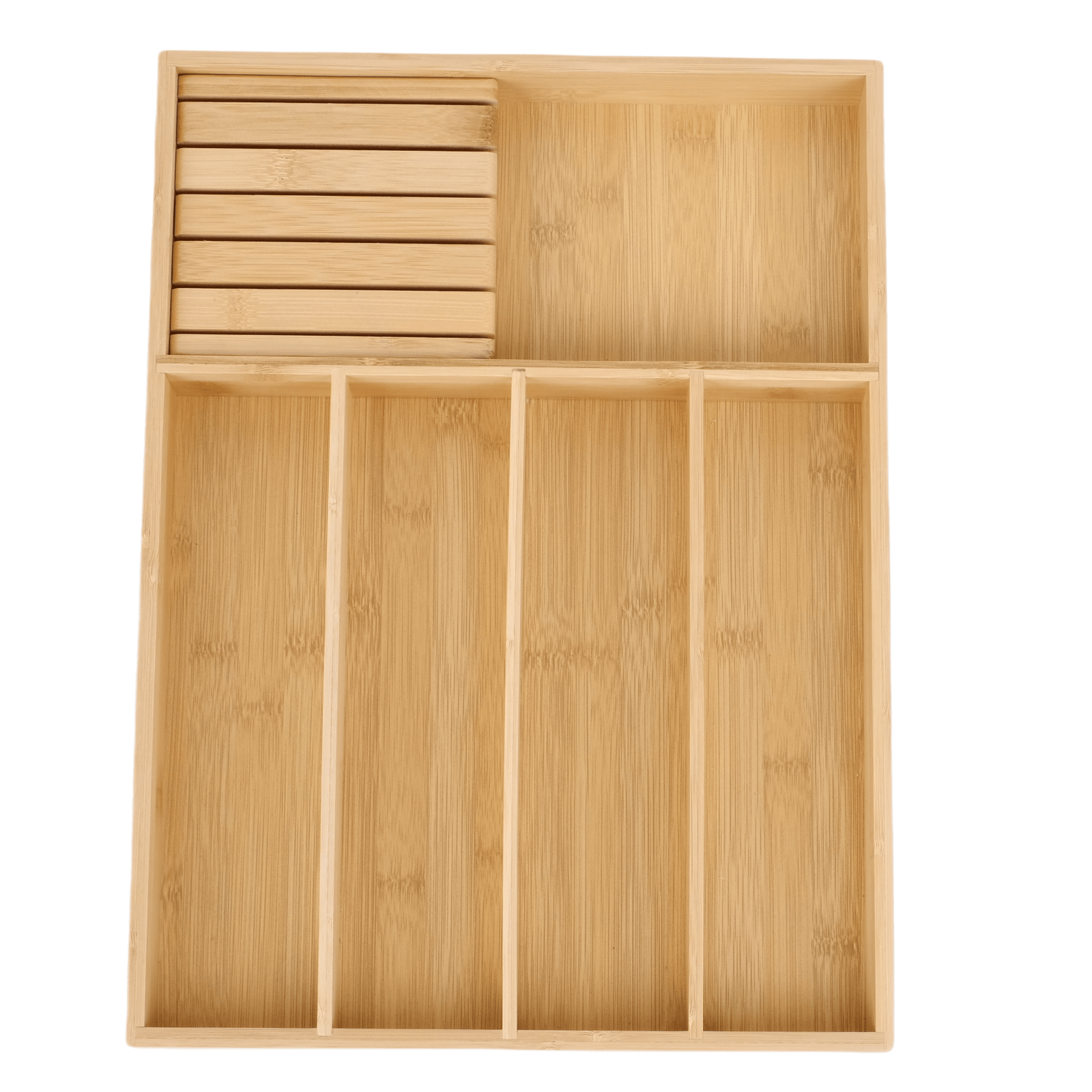 Multifunctional Bamboo Silverware Drawer Organizer Kitchen, Utensil Organizer with Knife Block, Cutlery Tray with Divider