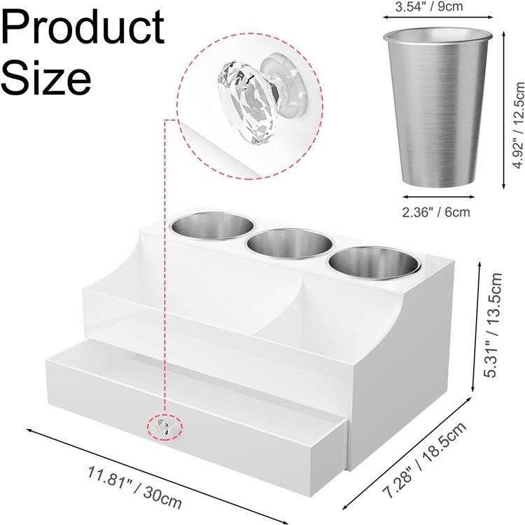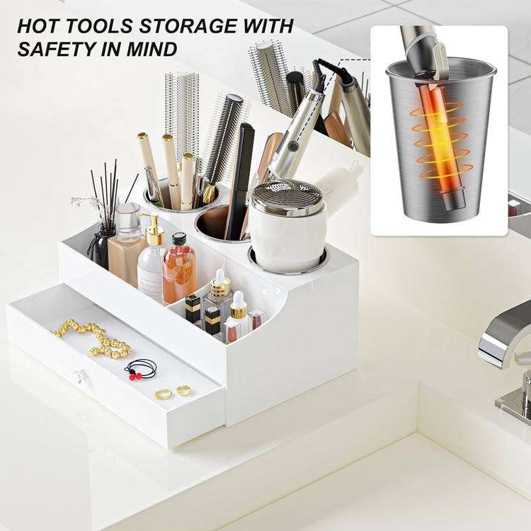 Bathroom Vanity Countertop Dryer Holder Stand Wooden Hair Tool Storage Organizer With 3 Stainless Steel Cups