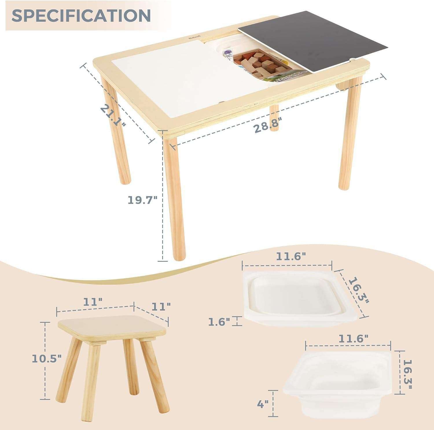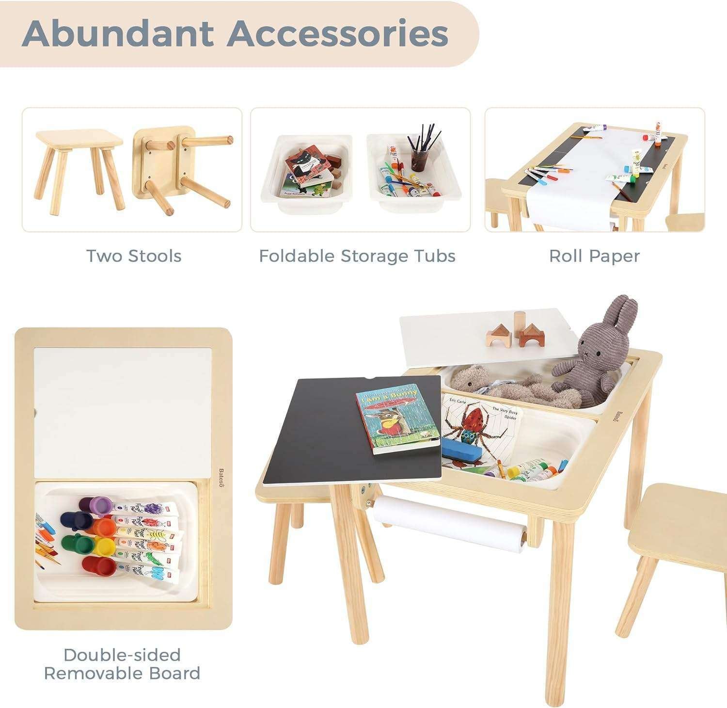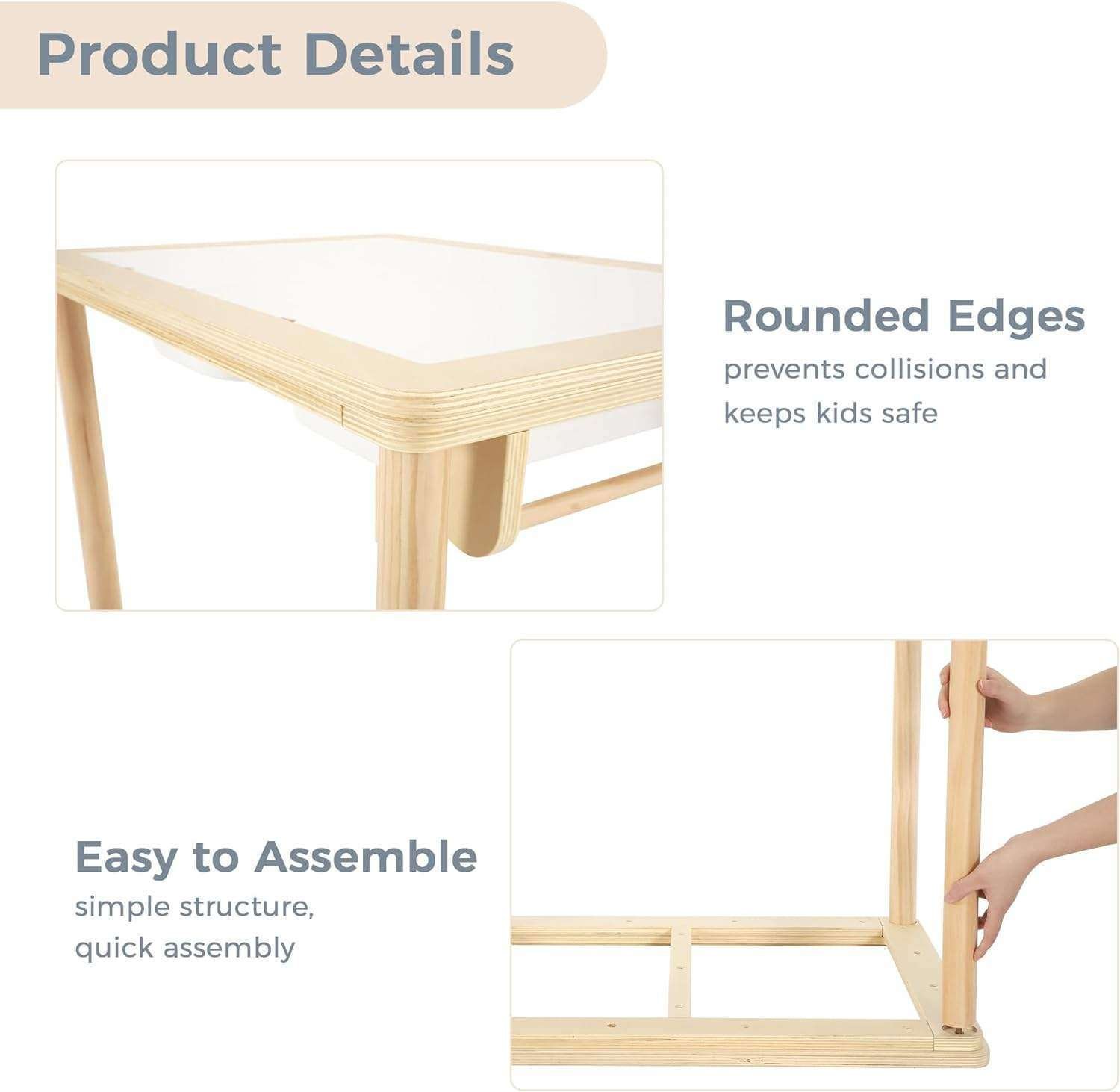 Wholesale Wood Kids Sensory Table with 2 Chairs and 1 Roll Paper,Wooden Sand and Water Table with Board and Foldable Storage Bin