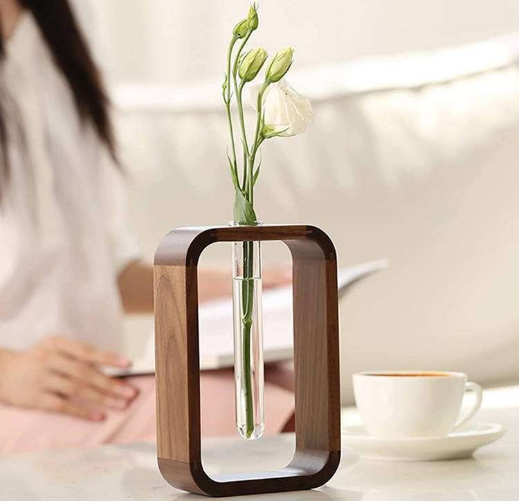 Hydrophilic Plants Stand Tabletop Water Planting Propagation Stations Decor Glass Tube Flowers Vase With Wooden Stand