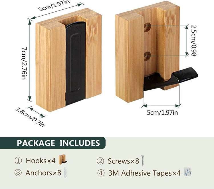Modern Home Dector Wooden Clothing Hanger Entryway Customized Size Bamboo Wall Mounted Coat Rack With Retractable Hooks
