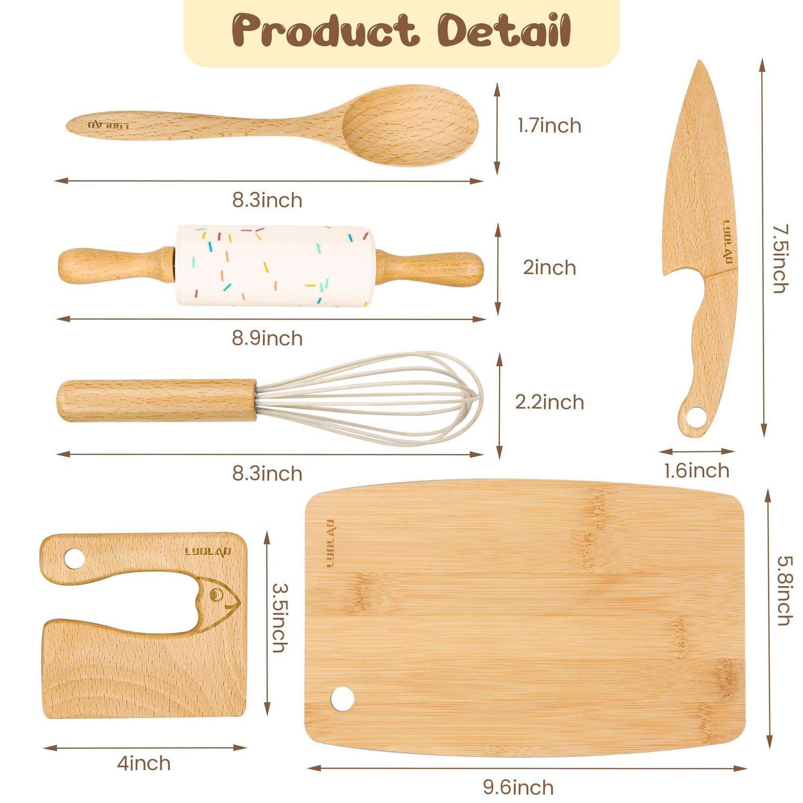Wooden Kids Safe Knife and Kids Baking Set Toddler Montessori Kitchen Tools Cooking Utensils and Baking for Kids Little Chefs