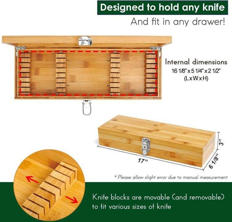 Custom Kitchen Bamboo Organizer Universal Insert Knife Display Packaging Case Lockable Wood Box For Knife