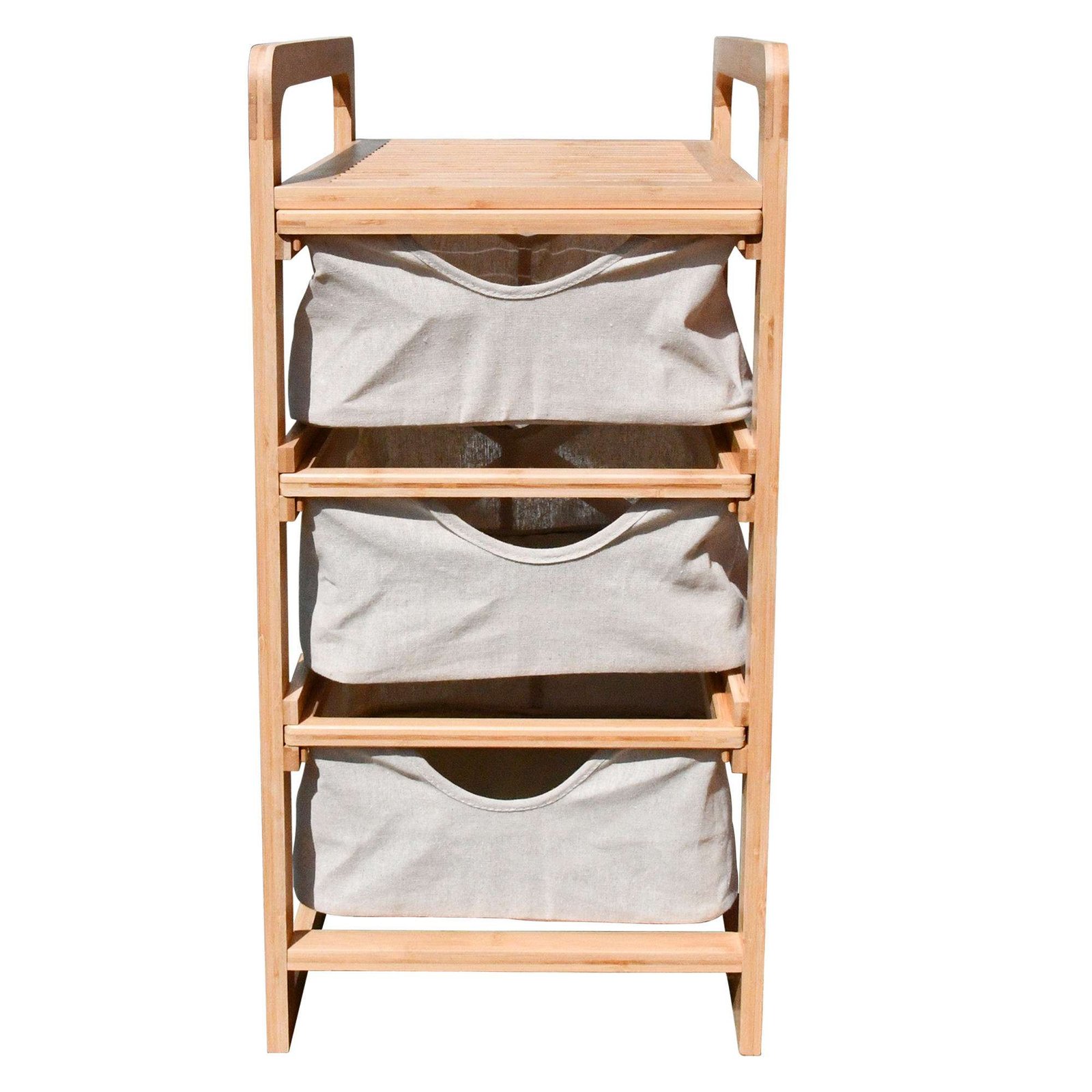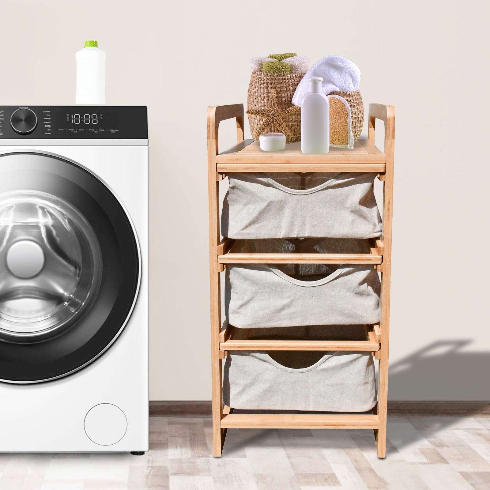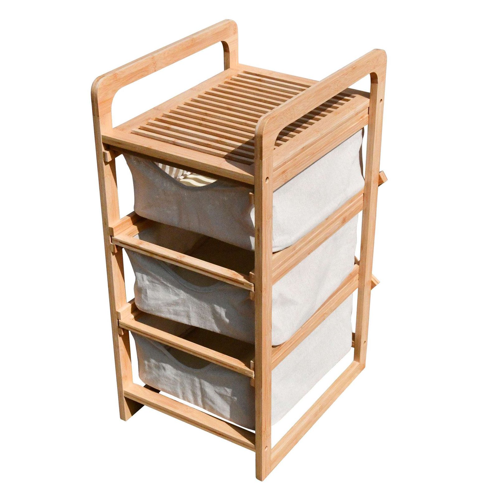 Eco-friendly Foldable Clothes 3 Tier Bamboo Laundry Hamper Bamboo Laundry Basket with Storage Bag