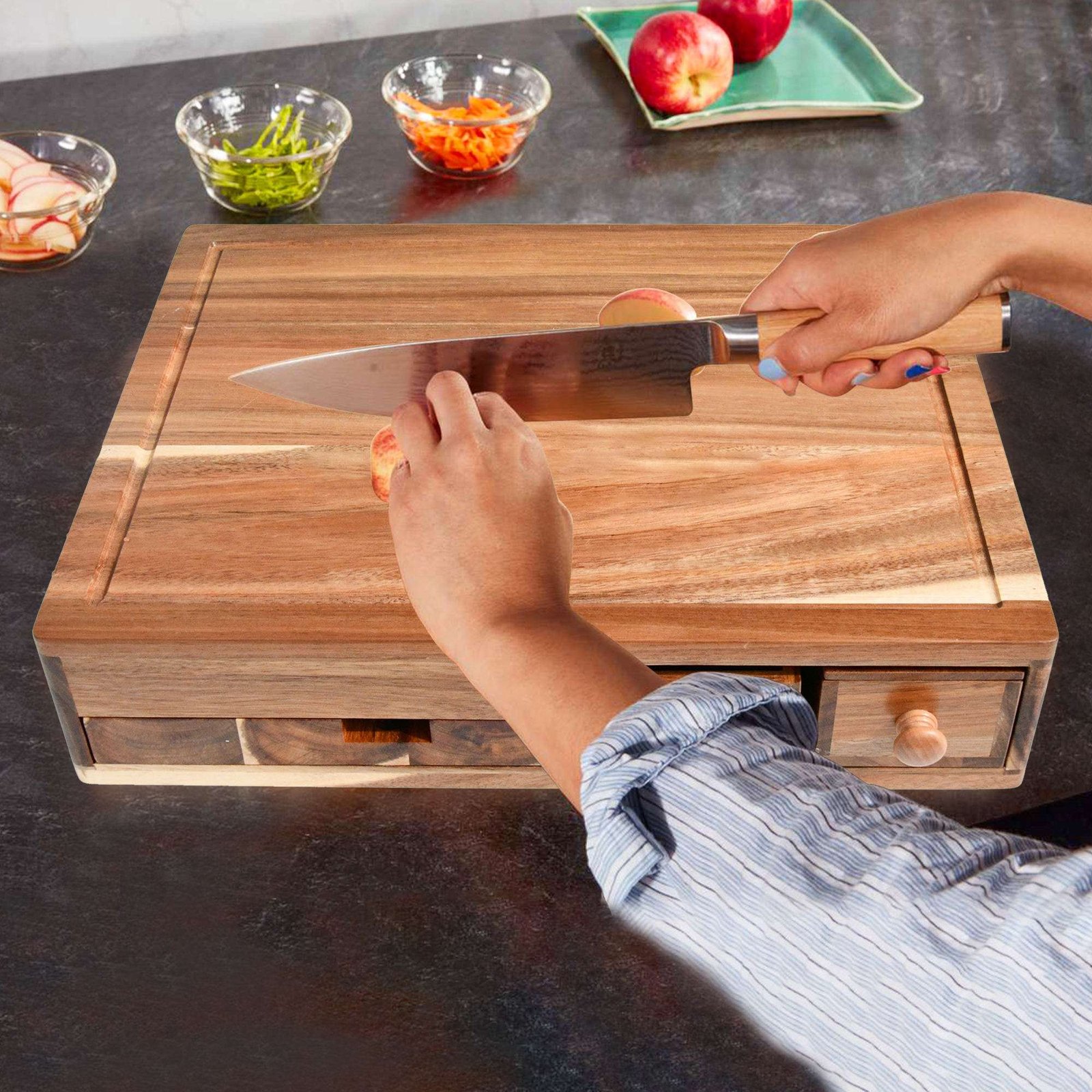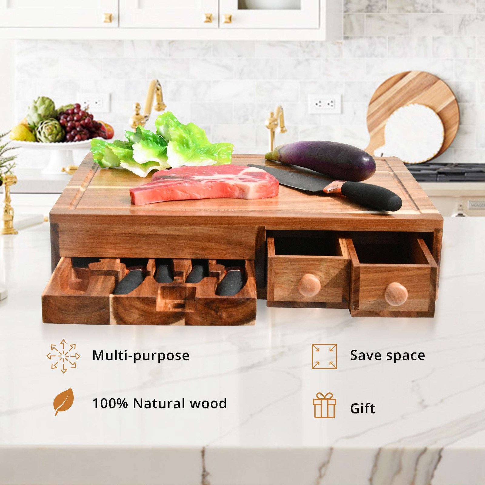 Wholesale Eco-friendly Wood Cutting Board Chopping With Drawer Tray Container And Knives And Handles For Any Kitchen And Restaurant
