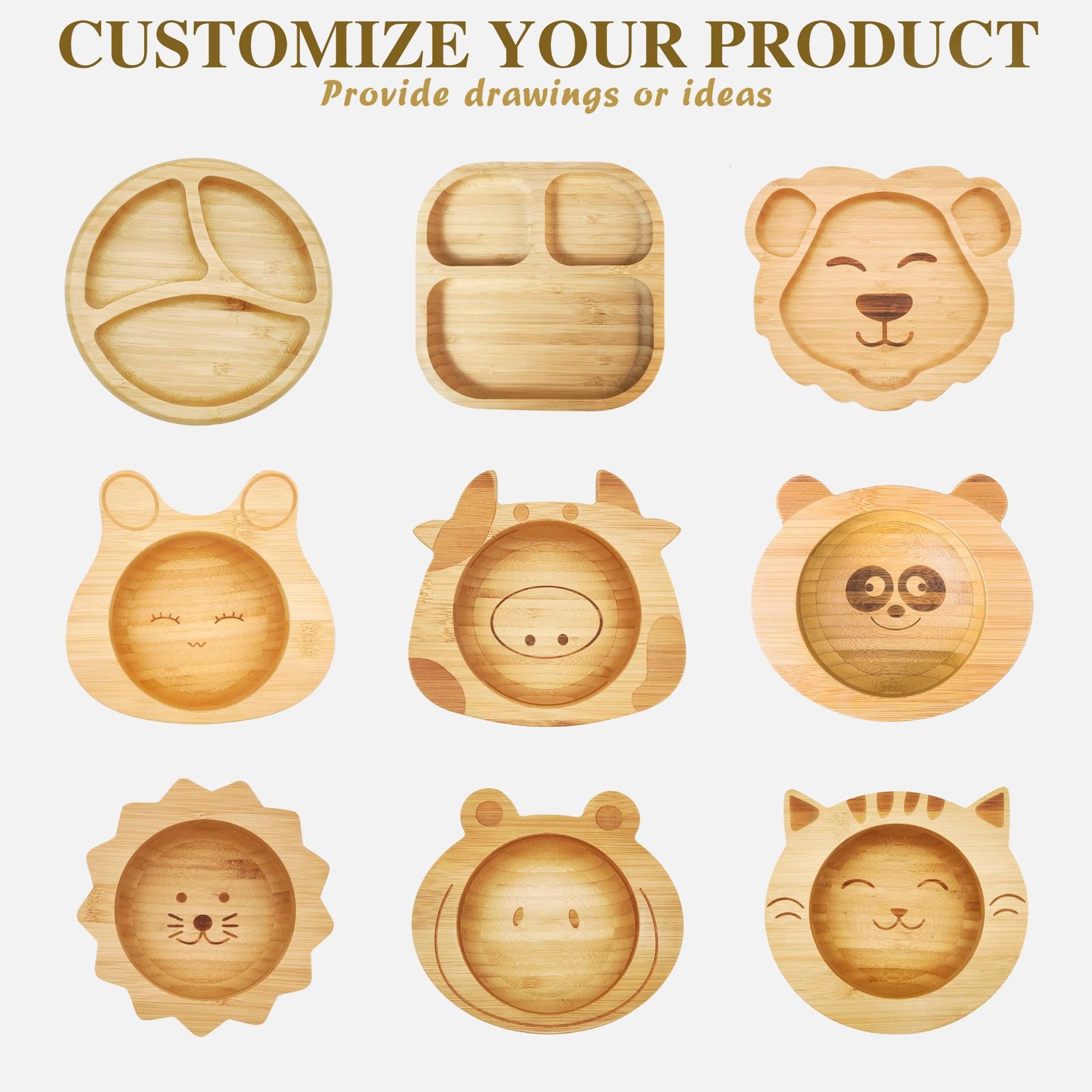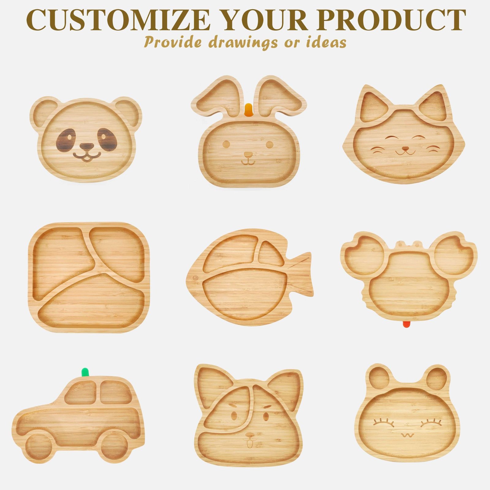 Wholesale Wooden Kids Plate Baby Silicone Tableware Set Bamboo Suction Baby Plate