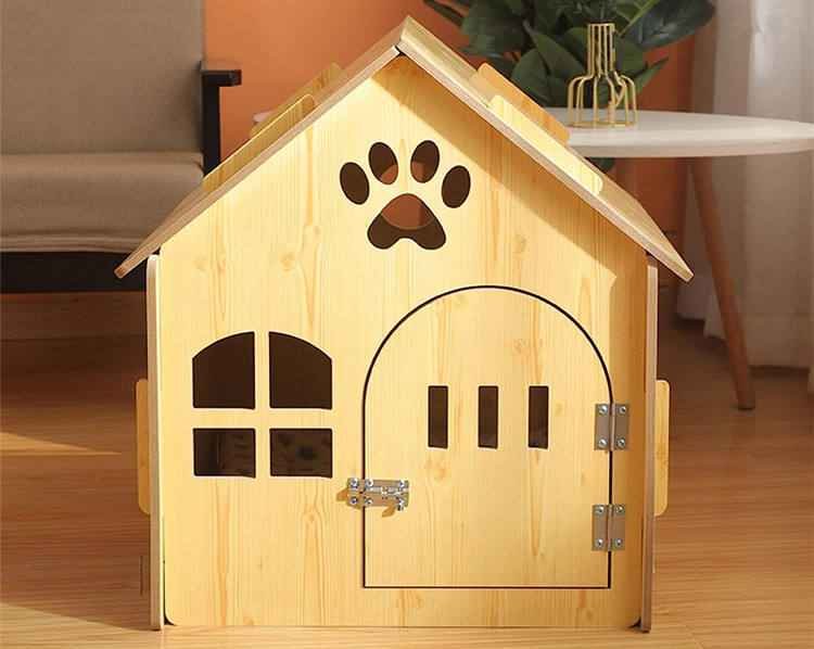 Casa De Madera Para Gatos China Wholesale Indoor Small Cages Wooden Outdoor Cat Dog House For Pet Dogs Houses With Padding