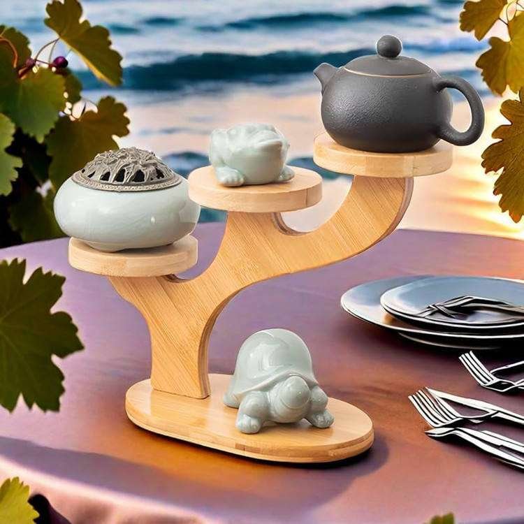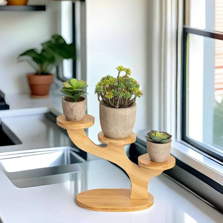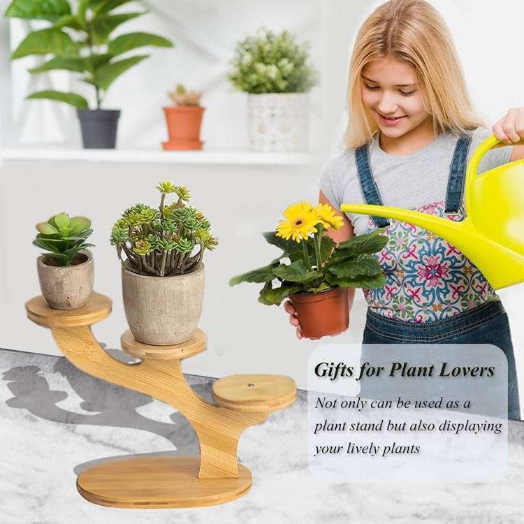 Tabletop Pot Holder Small Succulent Shelf 4 Tier Bamboo Tree Shape Plant Stand For Office Living Room Bedroom Decor