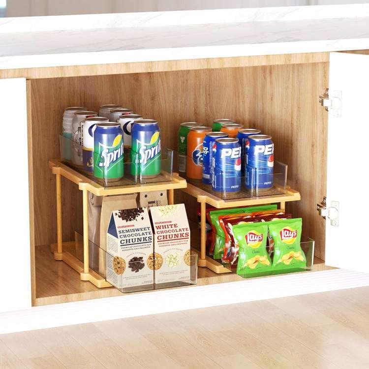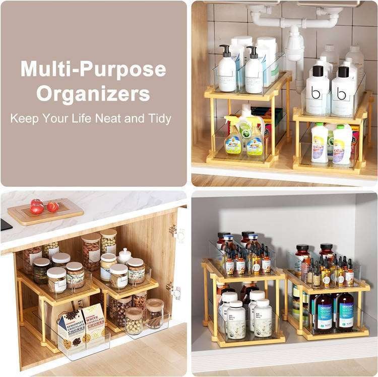 Multi-Purpose Pull Out Cabinet Shelf 2 Tier Bamboo Under Sink Organizer And Storage For Kitchen Bathroom Cabinet