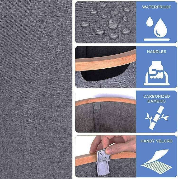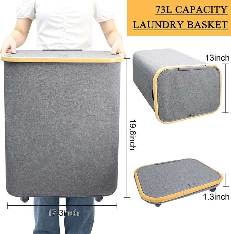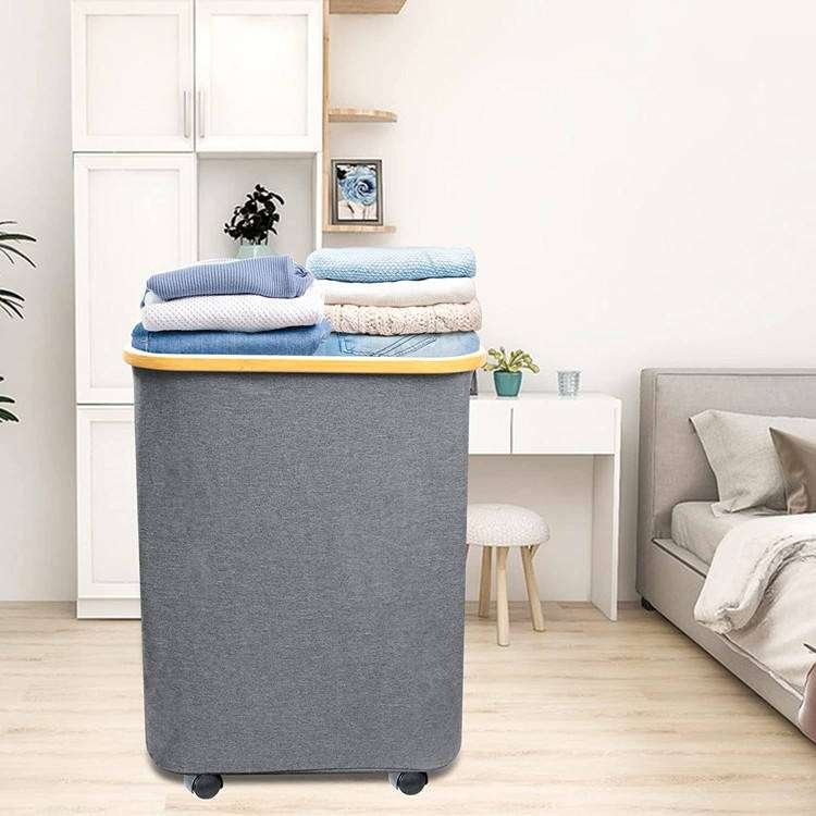 Large Capacity Portable Bamboo Collapsible Laundry Canvas Hamper Laundry Basket With Wheels And Removable Laundry Bag