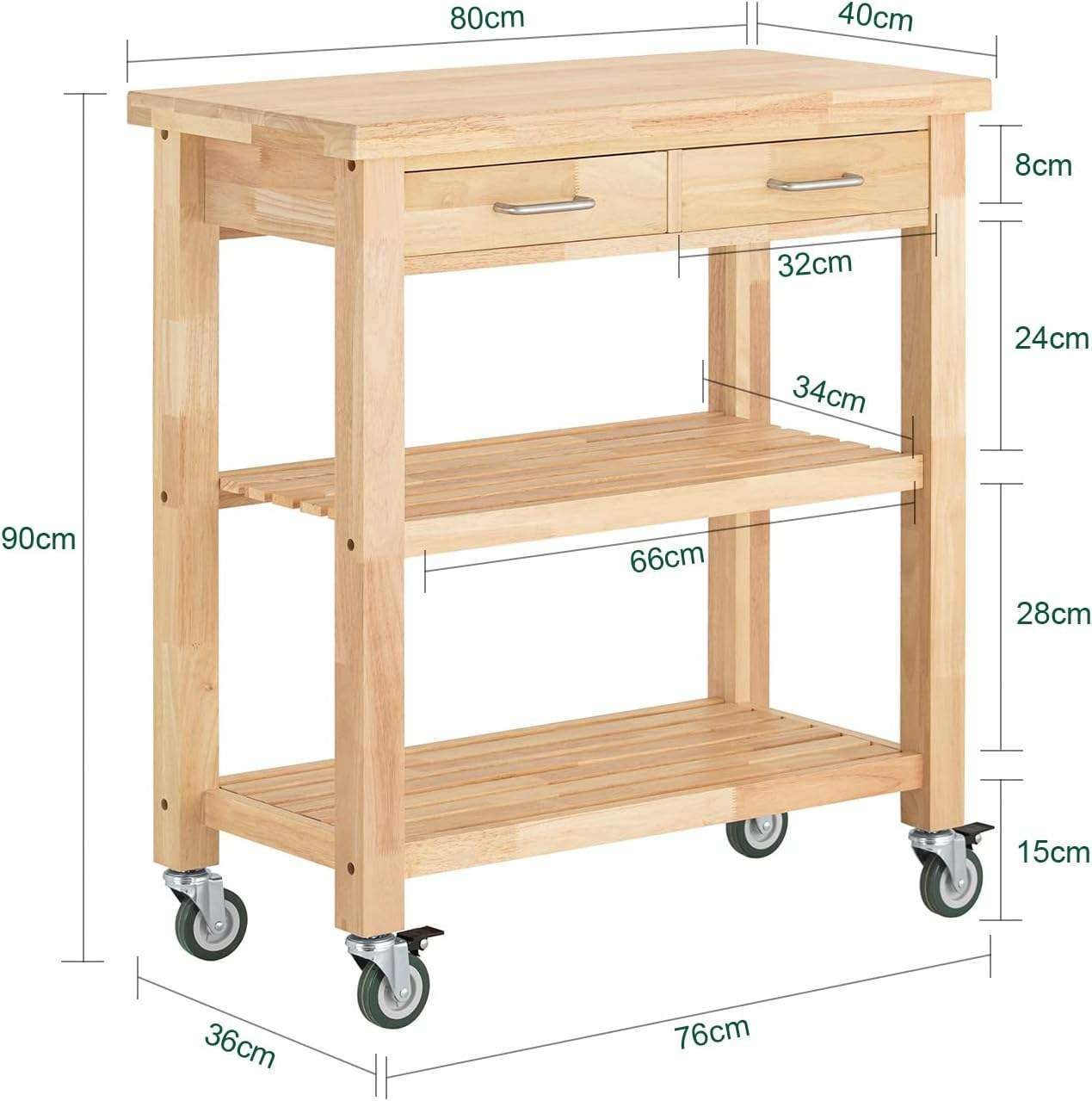Wholesale Wood Kitchen Trolley Cart with 2 Drawers and 2 Shelves, Kitchen Storage Trolley with Wheels