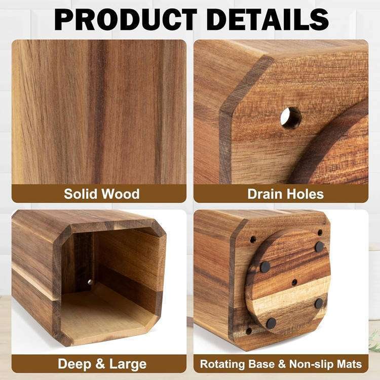 Farmhouse Kitchen Cooking Tools Spoon Spatula Organizer Stand Rotating Large Wooden Utensil Holder Square