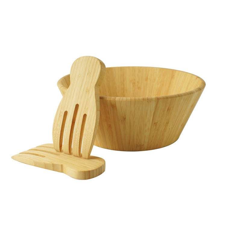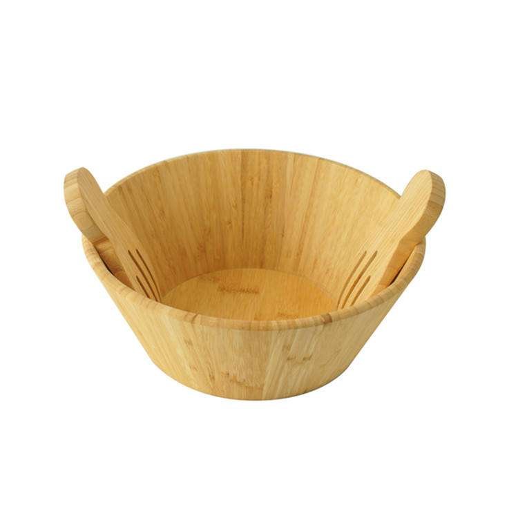 Bol En Bois Kitchen 12 Inch Large Food Preparation Mixing Bowl Handmade Eco-Friendly Bamboo Salad Bowl With Server Utensils
