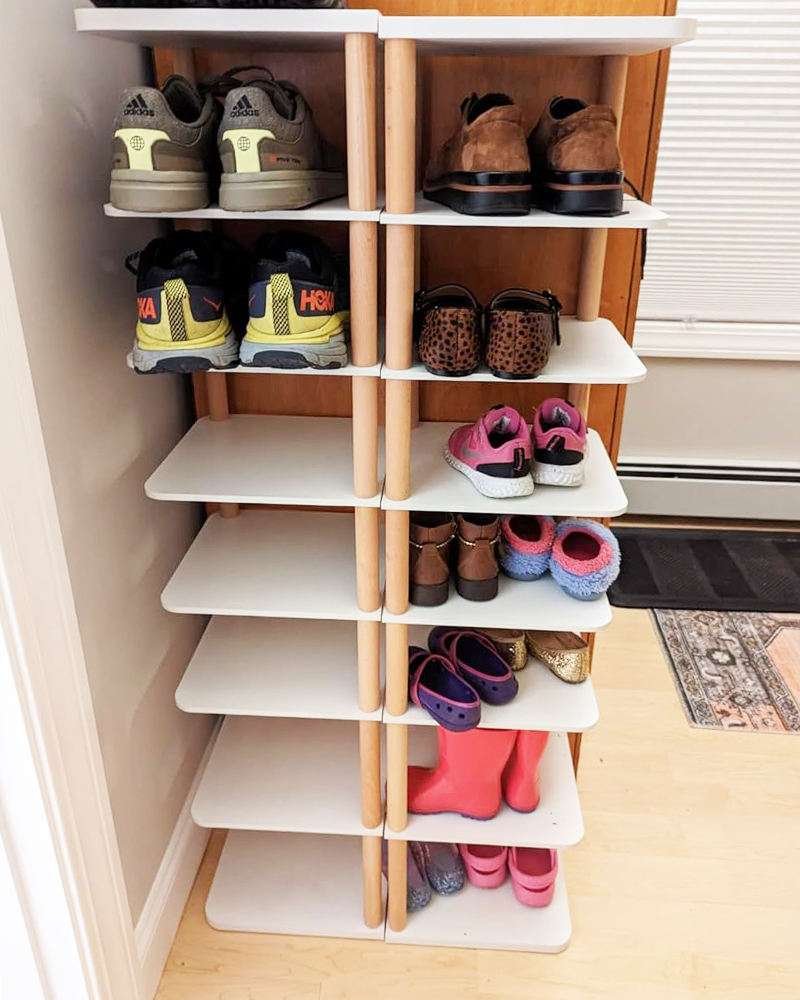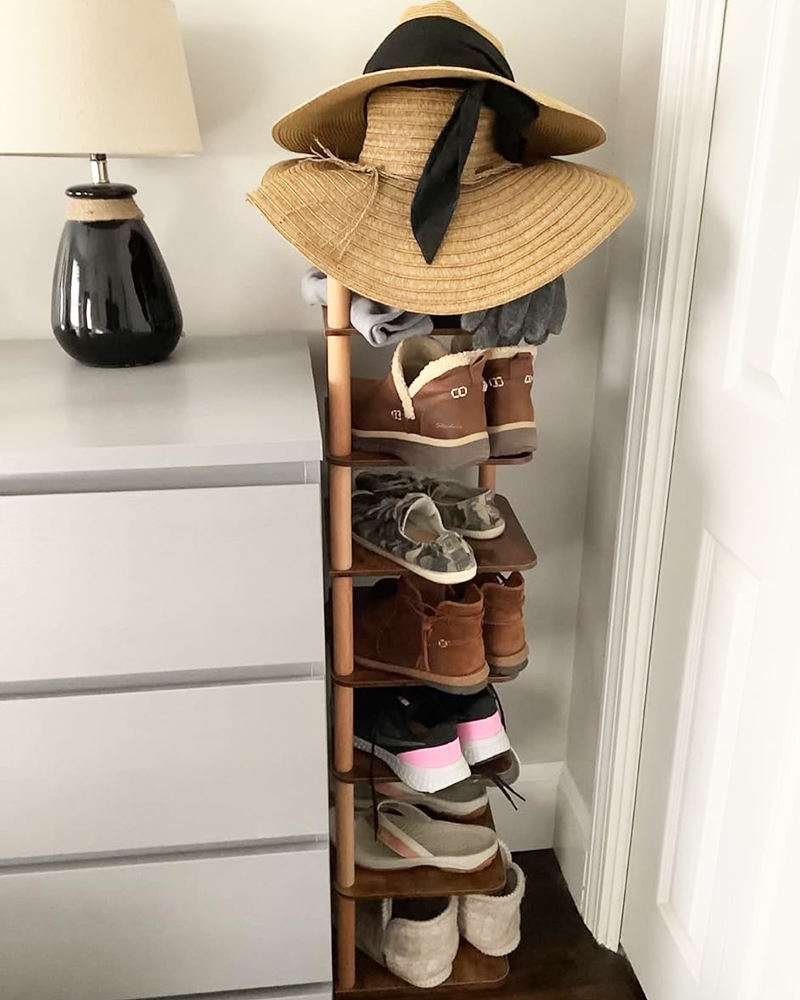 8 Tiers Vertical Narrow Bamboo Tall Shoe Organizer Rack Stylish Wooden Space Saving Shoe Storage Stand