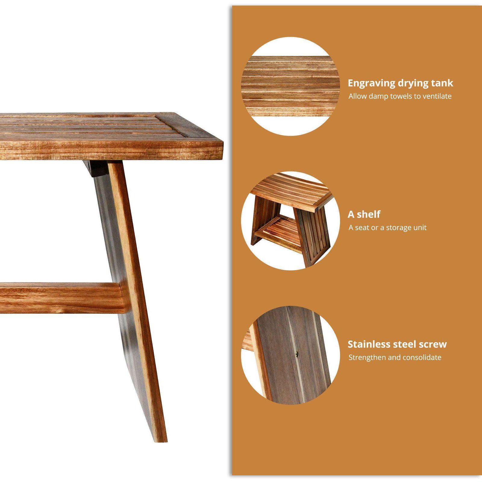 Wholesale Wood Spa Bath Shower Stool Bench With Storage Shelf Seats For Adults Seniors Women Elderly Tileable