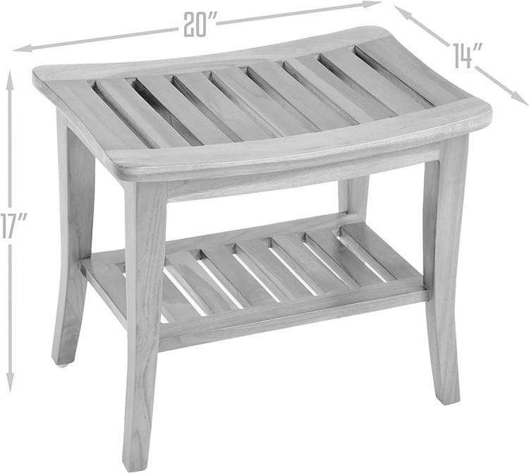 Bathroom Corner Teak Wood Shower Bench Indoor Patio Garden Yard Bath Spa 2 Tier Waterproof Stool With Underneath Storage Shelf