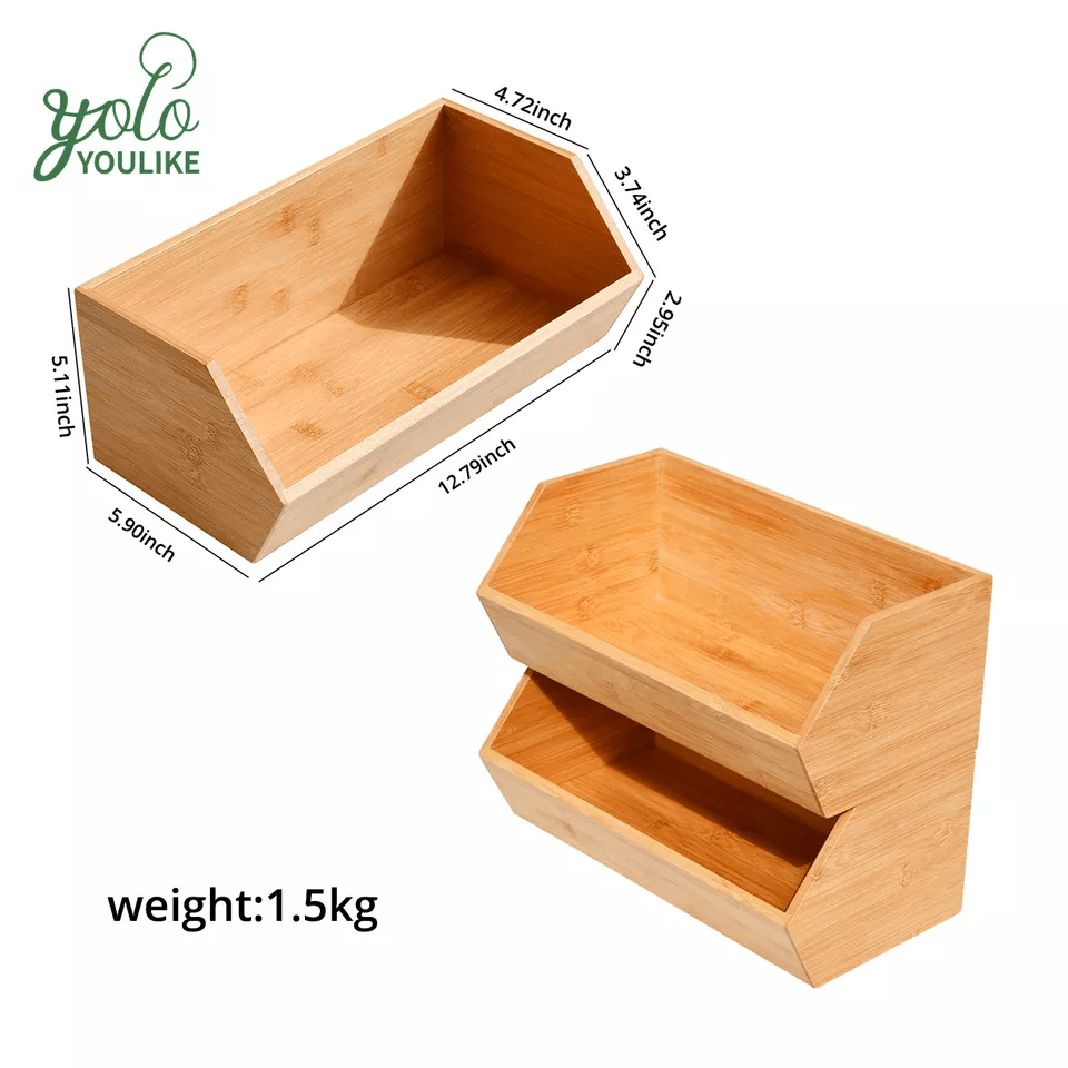 Bamboo Stackable Food Storage Organization Bin Basket Drawer Organizer Crate Boxes with Handles for Kitchen Pantry
