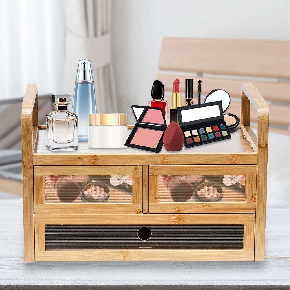 Wholesale Eco-friendly Bamboo Wood Cosmetic Storage With Handles And Drawers For Any Bathroom And Bedroom