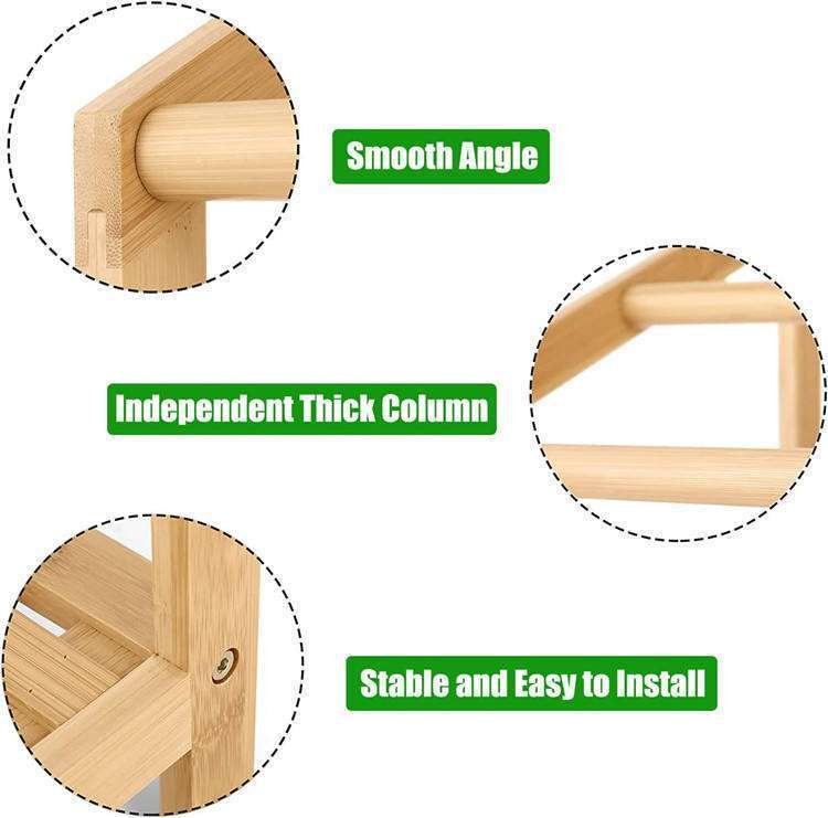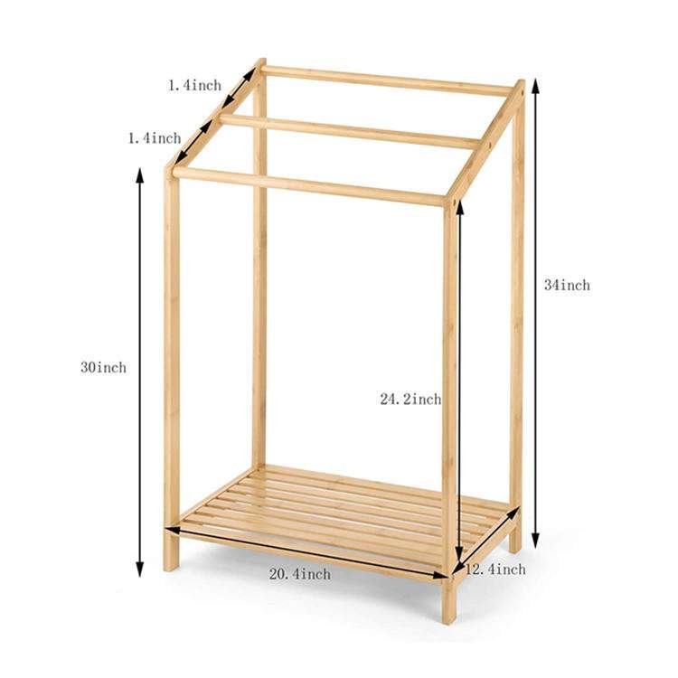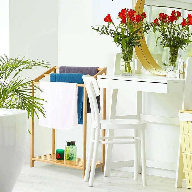 Bathroom Laundry Bamboo 3 Tier Ladder Blanket Holder Organizer Free Standing Wood Towel Rack With Bottom Storage Shelf