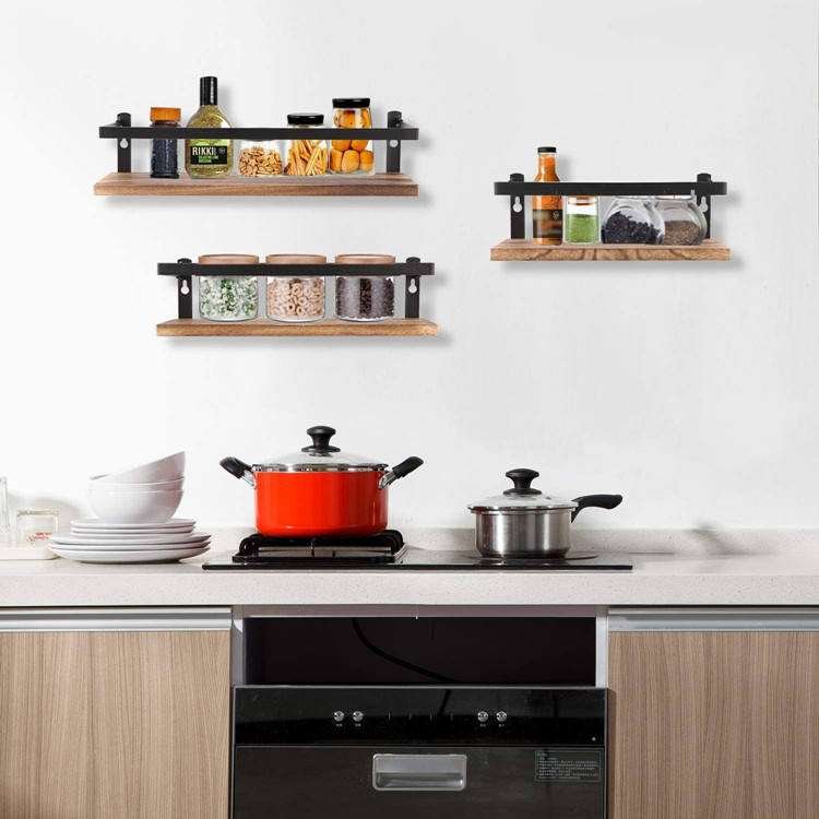 Farmhouse Decor Wooden Floating Book Storage Metal Bracket 3Tier Shelving Wall Shelf Storage Rack For Display