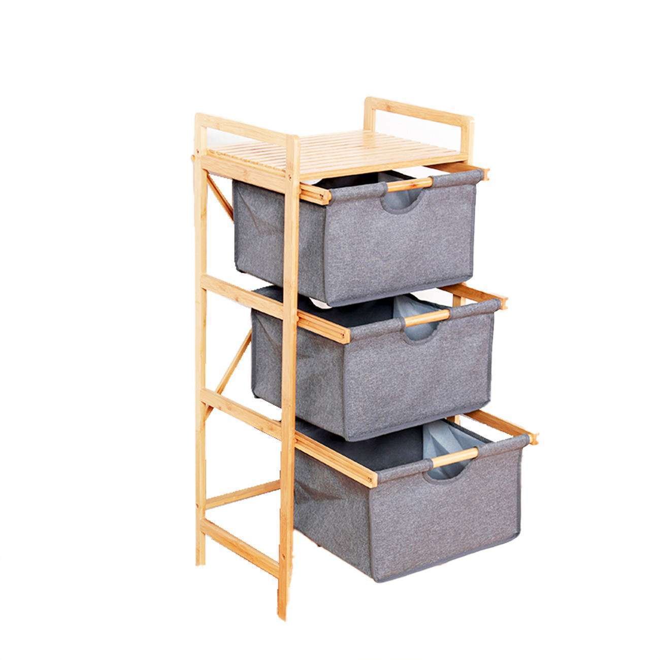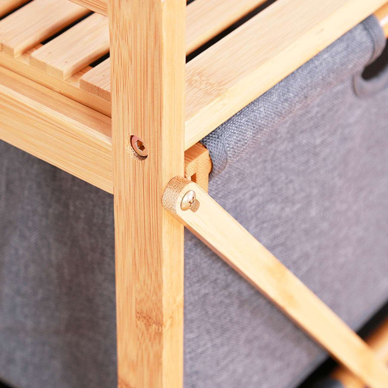 3 Tier Laundry Basket Bamboo Storage Shelf with Removable Storage Basket for Bathroom Living Room Bedroom