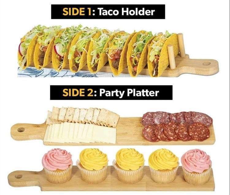 Kitchen Bamboo Taco Serving Platter Multiuse Food Charcuterie Stand Burrito And Tortilla Tray Wood Taco Holder With Tong