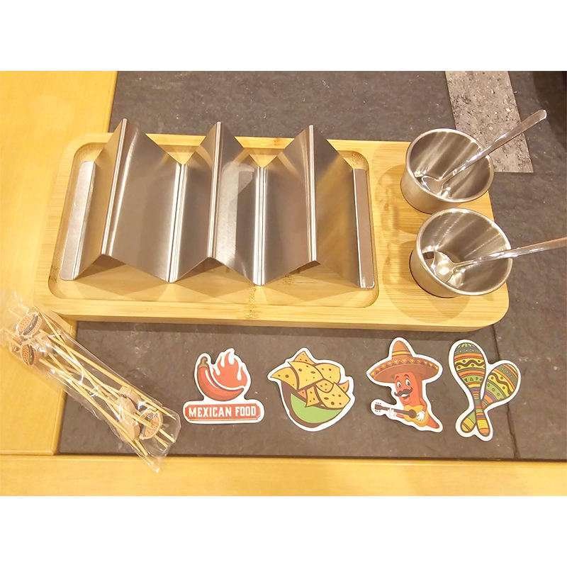 Wholesale Gift Bamboo Wood Fancy Taco Presentation Rack Plate for Taco Tuesday Bar Party