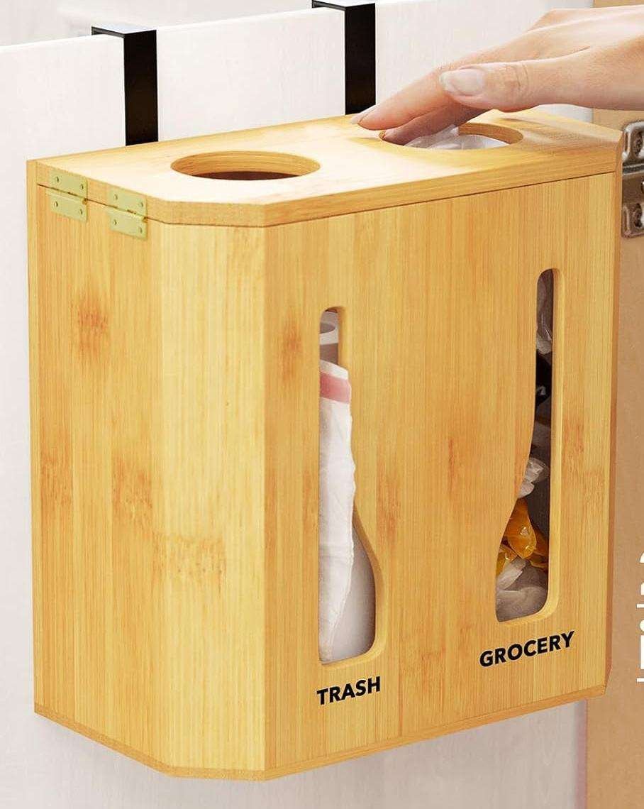 Wholesale Wall Mount Bamboo Bag Holder Trash Bag Box Garbage Bag Holders Organizer Under Sink