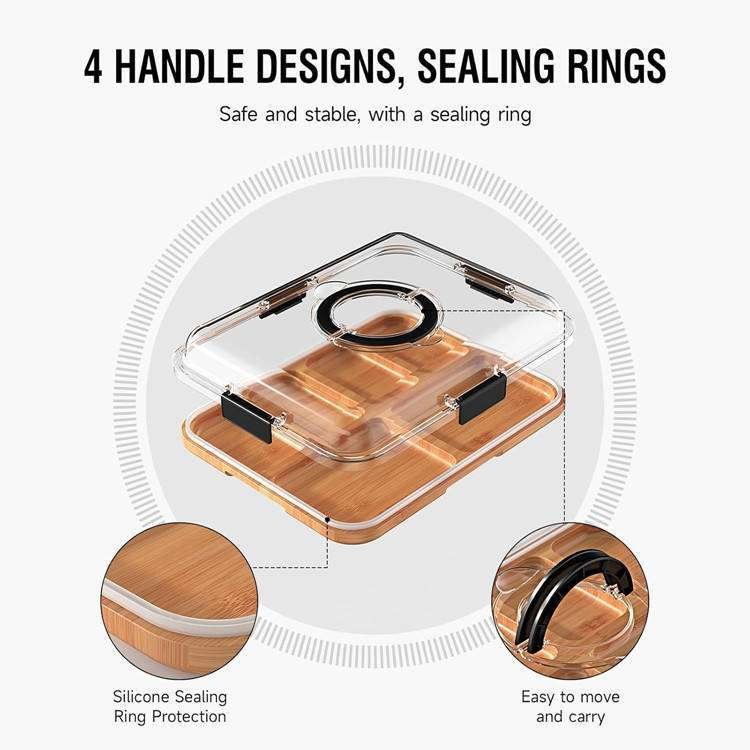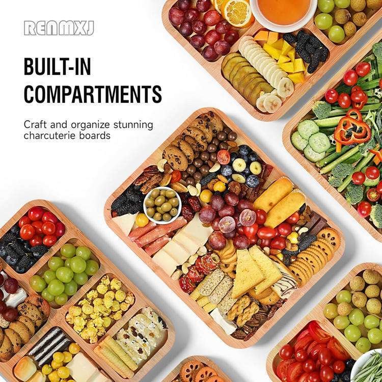 Custom Charcuterie Cutting Snack Compartment Serving Tray Travel Portable Bamboo Cheese Board With Lid