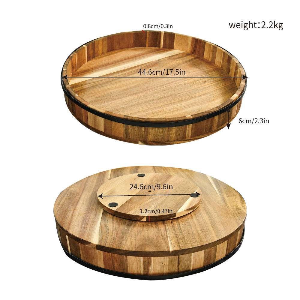 Wholesale 8 inch Decorative Breakfast Rotating Bamboo Ottoman Round Crafts Plate Dishes Acacia Wooden Serving Circle Tray for Bread Fruit