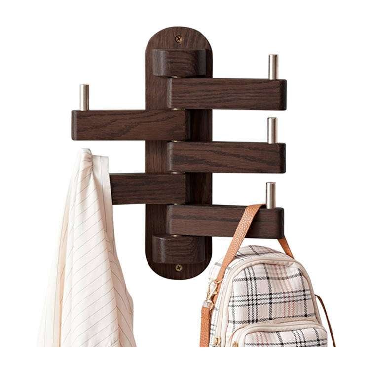 Home Decorative Swivel Coat Rack Hooks Natural Wood Wall Hook With 5 Foldable Arms For Bedroom Living Room Entryway