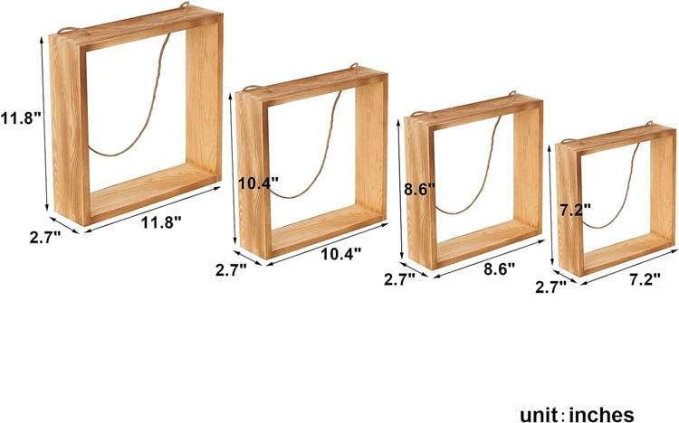 Multifunctional Large Wall Mounted Display Rack Hanging Organizer Rustic Wood Square Wall Cube Shelves For Living Room