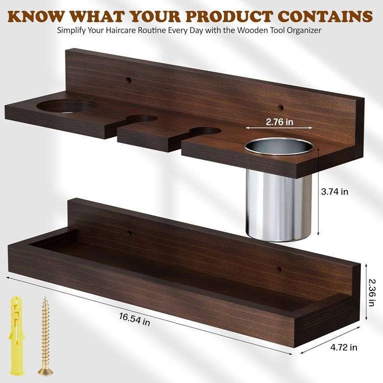 Over The Door Hair Tool Organizer Wall Mounted Set Of 2 Layer Wooden Blow Dryer Holder Heat Curling Iron Storage