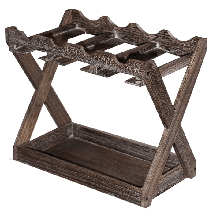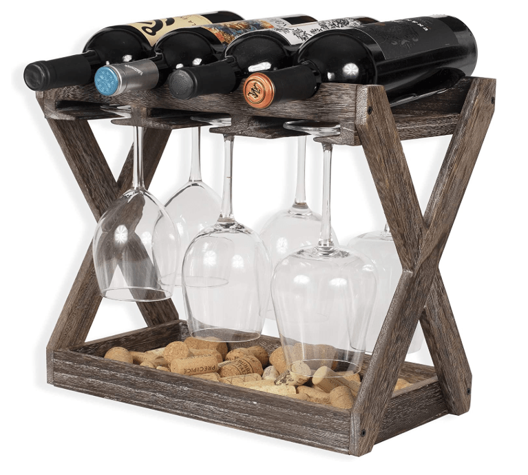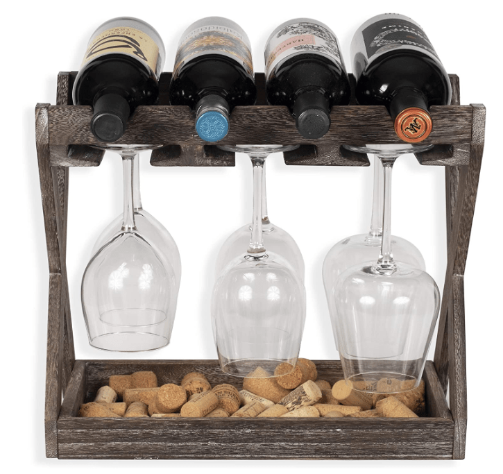 High Quality Rustic Grey Wood Wall Mounted Wine Glass Bottle Rack With Chalkboard