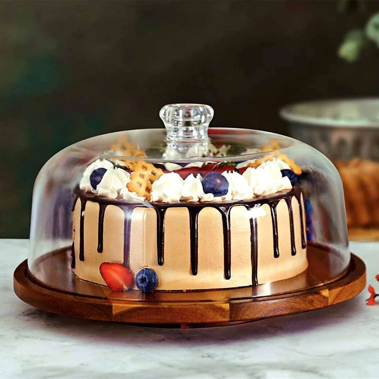 Turntable Base Bread Plate Display Server Tray Round Wooden Spinning Cake Stand For Birthday Wedding Party